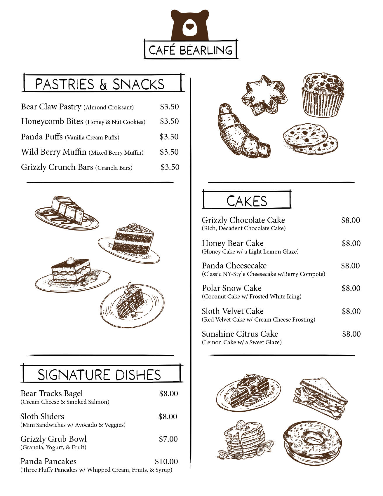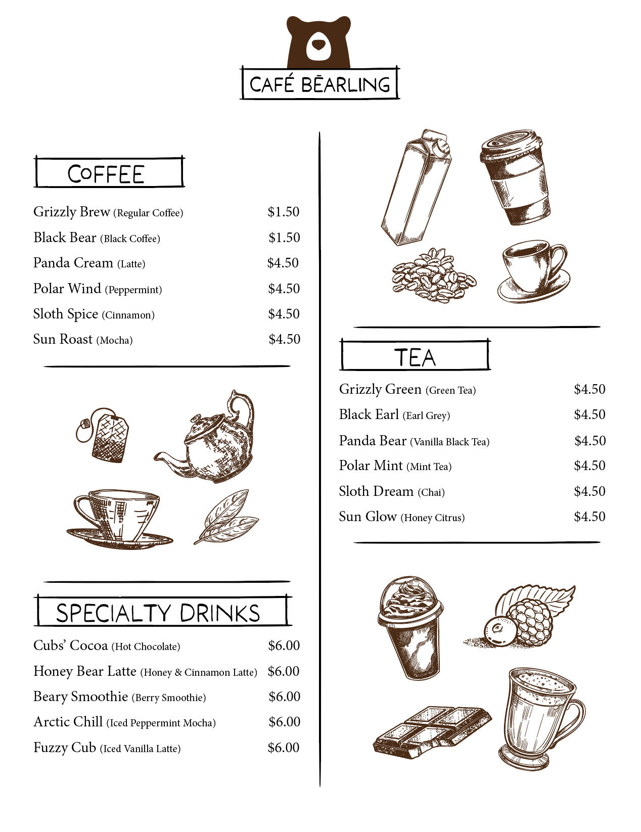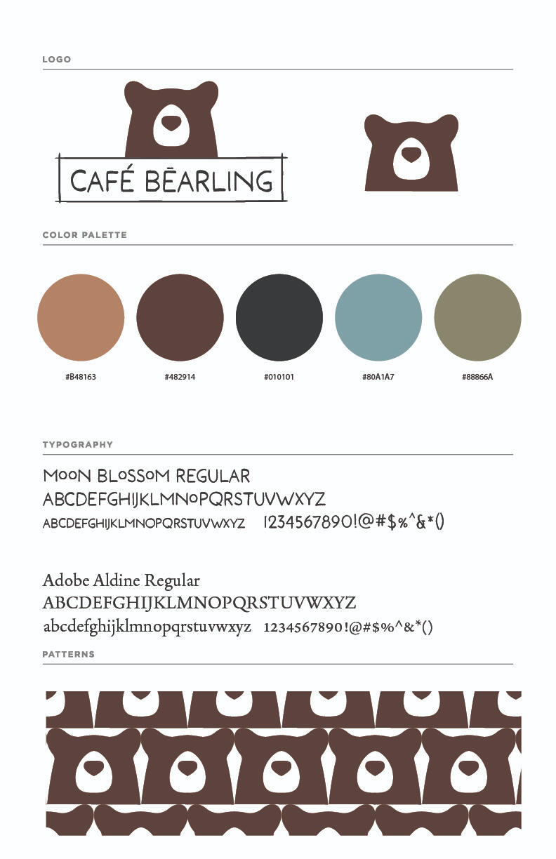 Individual project - I was responsible for research, design, and presentation.This branding system was created as part of a class project where I designed a cohesive identity for a fictional café. The goal was to explore brand storytelling through typography and packaging. I chose to create a cute and cozy bear-themed cafe named Café Bēarling (Be-arling; a play on the words "bear" and "darling").I first conceptualized the cafe and created moodboards to fit the ideas I had in mind. Next was creating the logo, picking colors, fonts, and creating a pattern. After that was the creation of the menu and packaging mockups.